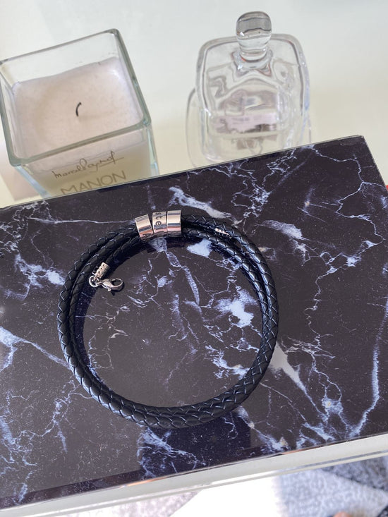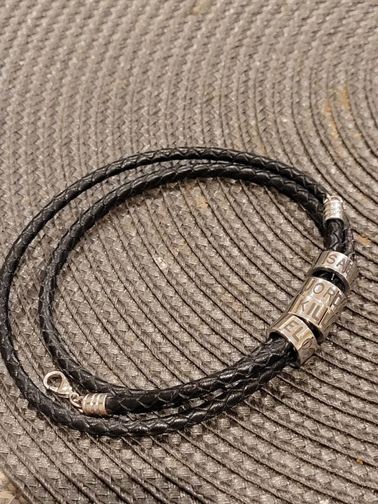 Pánský černý kožený náramek – personalizovatelný s povrchovou úpravou Stříbrná nebo zlatem