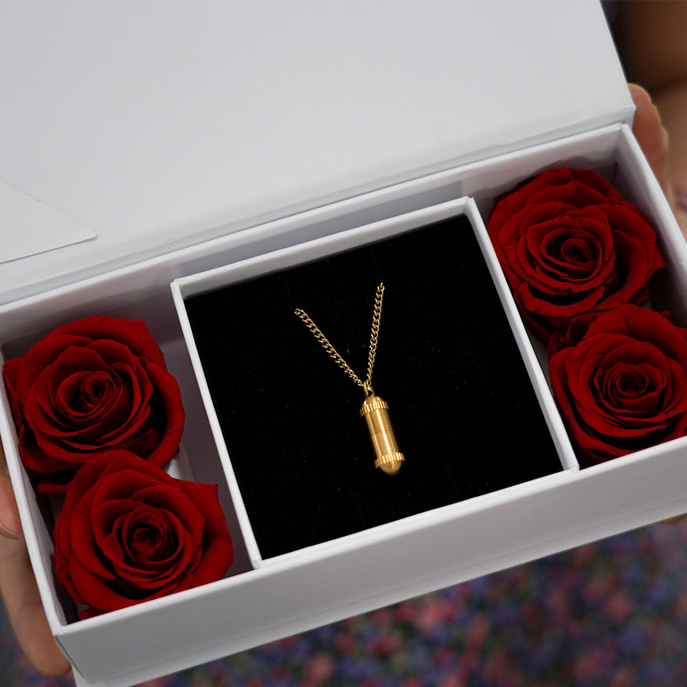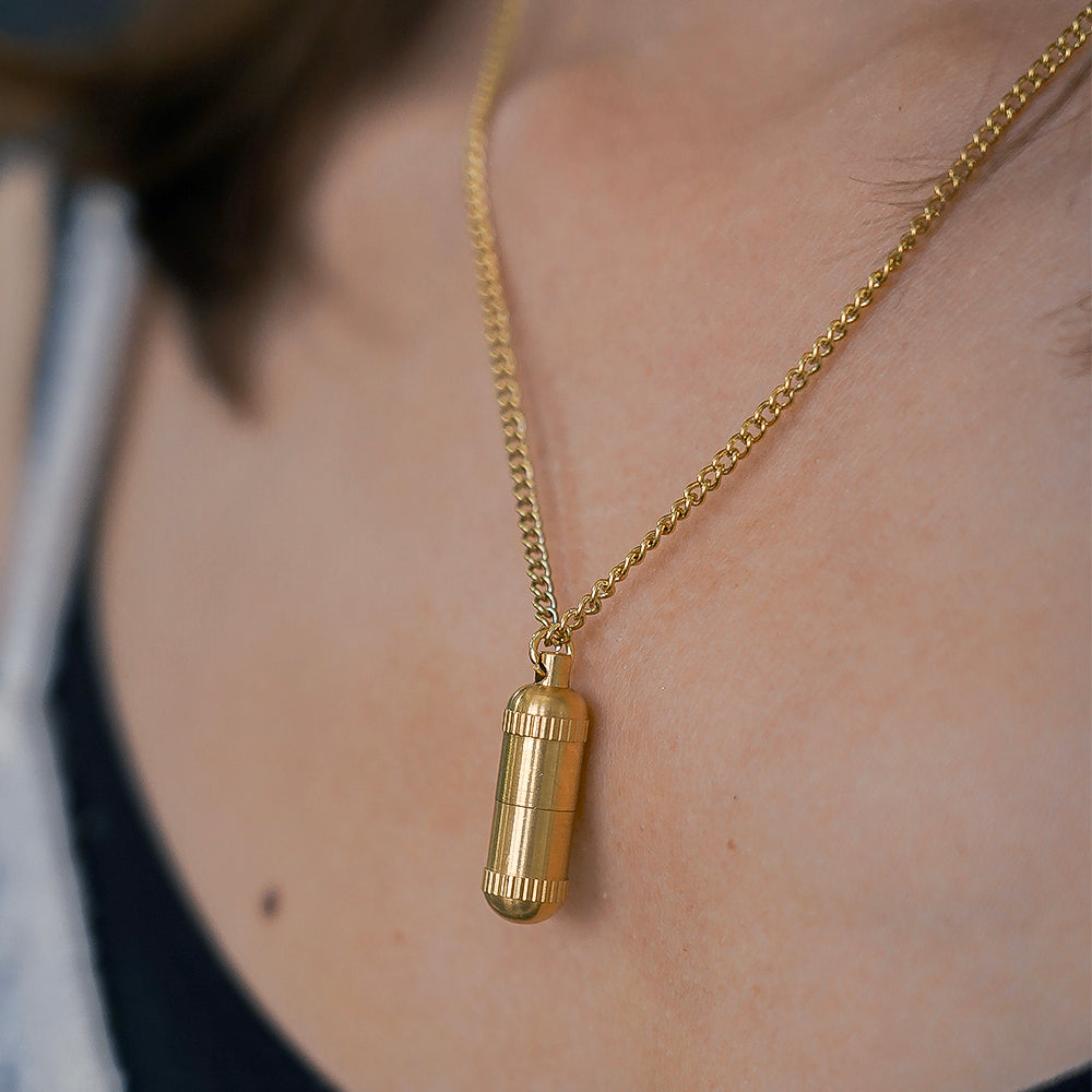 Din Manifestation-kapselhalskæde er håndlavet af 316L rustfrit stål med guldfinish og er designet til at holde hele livet.