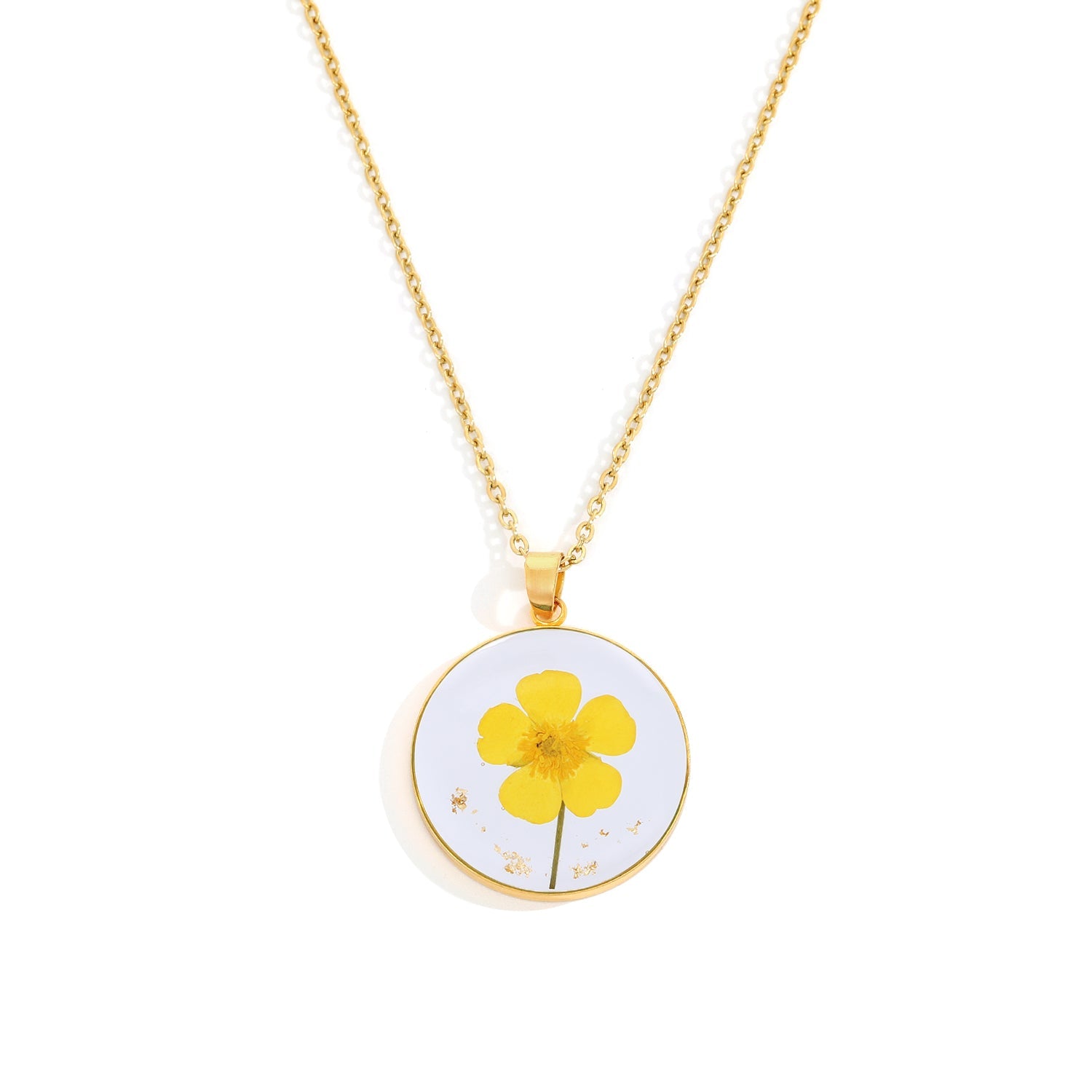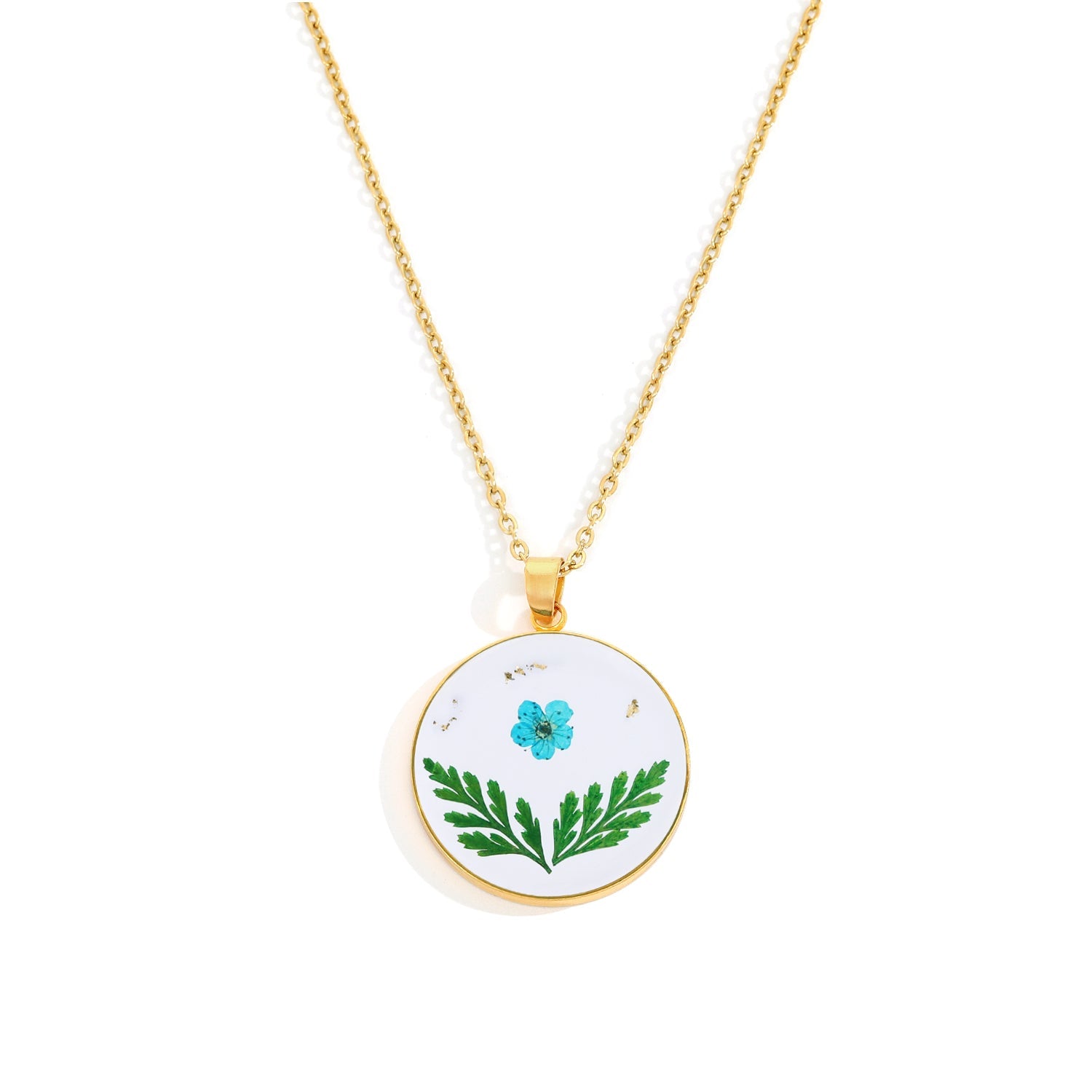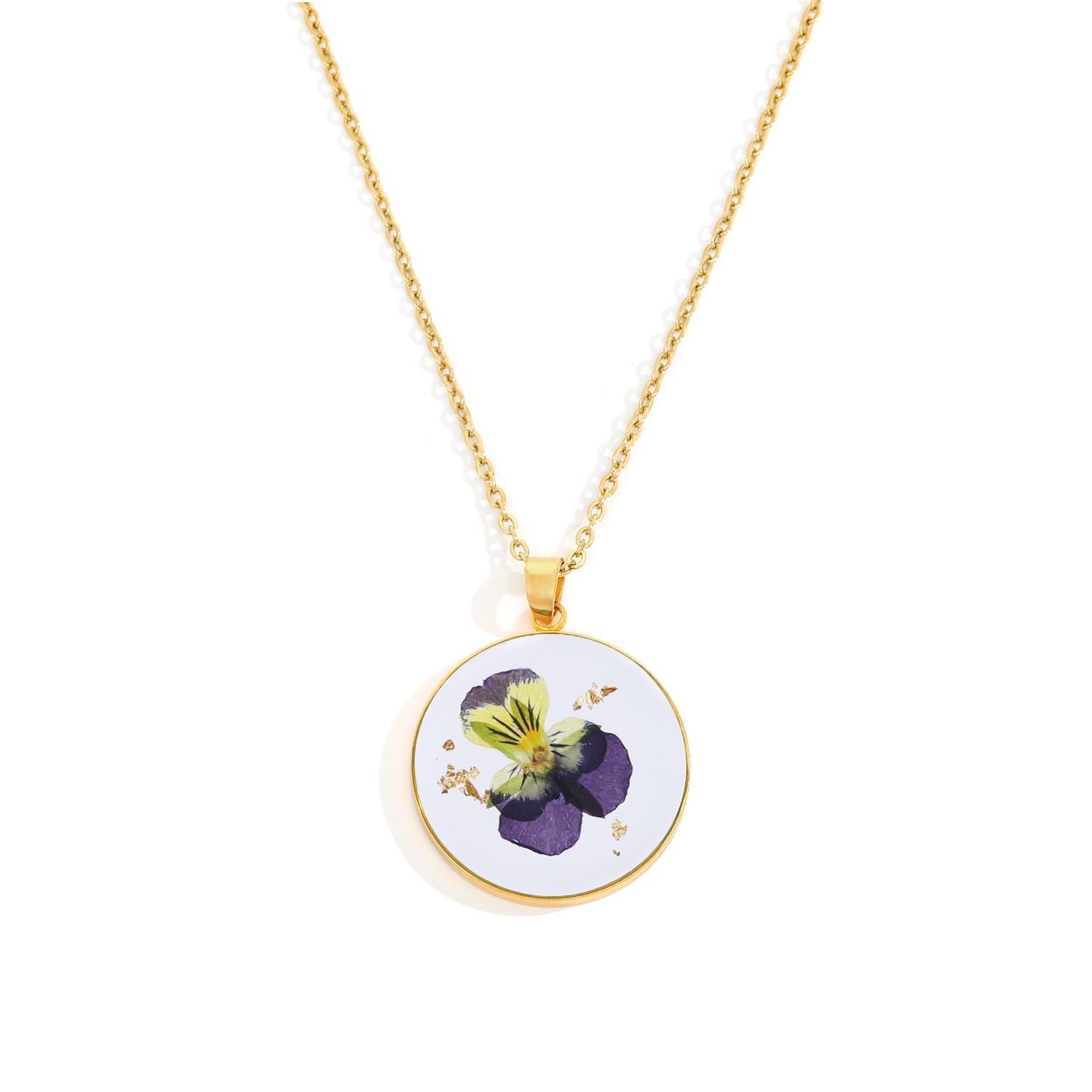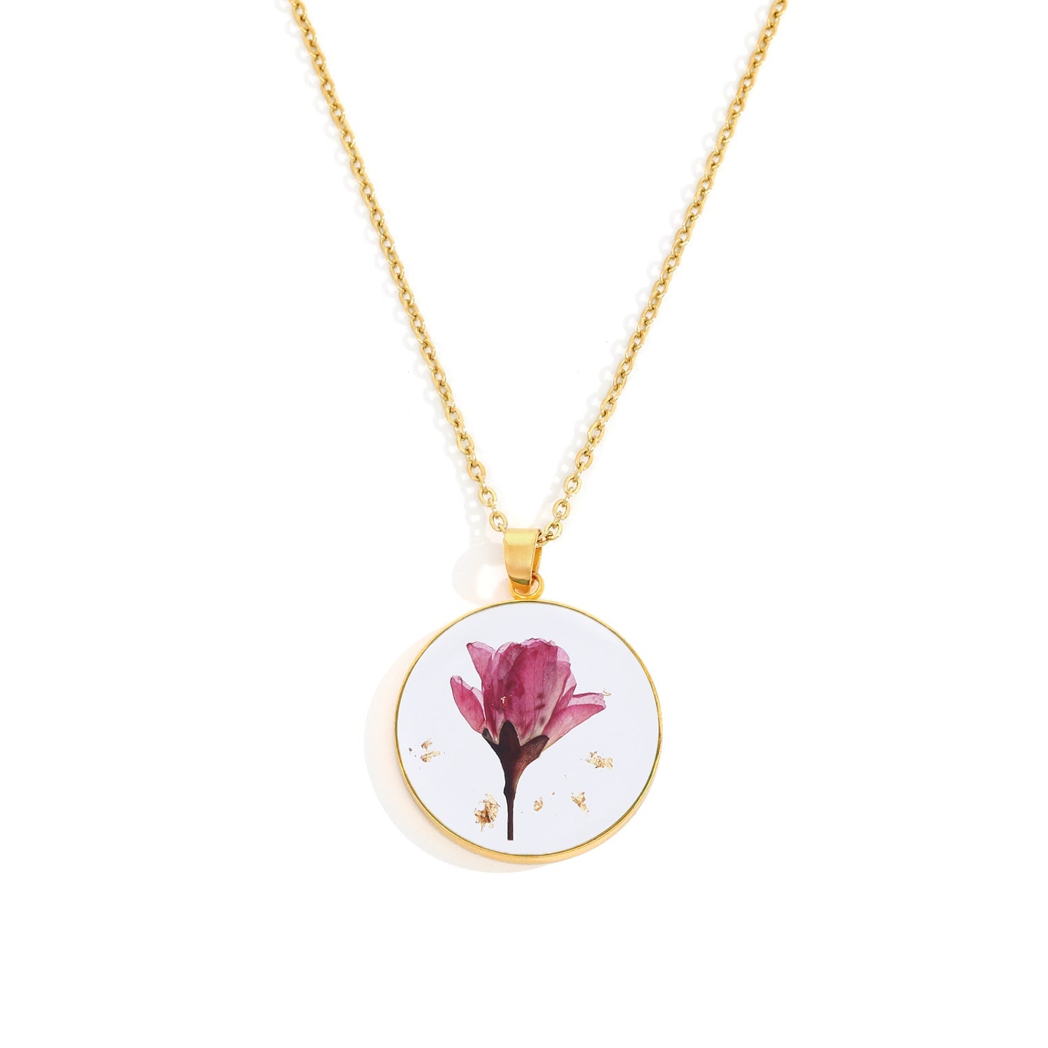 Dit vedhæng er håndlavet af ægte pressede blomster indkapslet i harpiks og er designet til at bevare naturens skønhed hele livet.